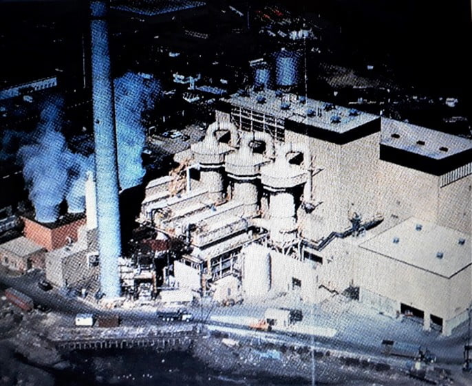 * والصورة لمصنع حرق القمامة وتوليد الكهرباء قرب لندن عام 1990 م .