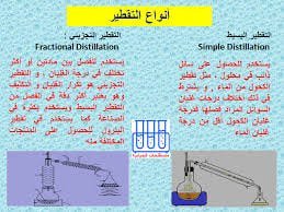 1 – التقطير البسيط : وهو فصل سائل عن سائل آخر مختلفين بدرجة الغليان .