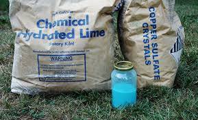 1 كغ كبريتات نحاس + 1 كغ جير ( كلس حي ) + 100 لتر ماء
