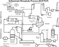 5 – وهناك طريقة حديثة لانتاج فوسفات ثنائية الكالسيوم بدأ من فلز الفوسفات الخام خالية من الفلور , وذلك بمعالجة فلز الفوسفات بحمض كلور الهيدرجين HCl (معادلة 1 ) , ثم معالجة المحلول الناتج بهيدروكسيد الكالسيوم ( معادلة 2 ) . ثم معالجة محلول كلور الكالسيوم بحمض الكبريت ( معادلة 3 ) . وبجمع المعادلات الثلاث نرى أن حمض كلور الهيدرجين المستعمل يعود استهلاكه :