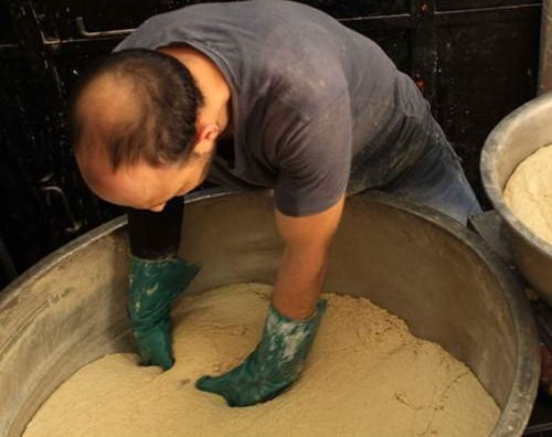1- غلي ( طبخ ) ما نسبته 1 كغ سكروز فقط , ( أو 1 كغ من مزيج الجلوكوز الصناعي بنسبة 250 غرام جلوكوز الى 750غرام سكروز , وقد تتغير هذه النسبة حسب سعر الجلوكوز الصناعي إلى السكروز , وحسب توفرهما في الاسواق ) + مع 5 – 10 سم3 مستخلص نبات العصلج ( شرش الحلاوة Quillaga sapoaria ) تركيز 10 % + وحمض الستريك ( حمض الليمون ) 1 – 2 غرام + مع ربع لتر ماء . في خلاط أو حلة مناسبة للكميات المتفاعلة , مع التحريك الشديد إلى أن يتحول الخليط الى قوام متجانس رخو مميز أبيض غني بالفقاعات يدعى : ( بالناطف ) , الذي يستعمل فيما بعد لإنتاج الحلاوة الطحينية , وفي العديد من الحلويات الشامية ( كرابيج حلب وغيرها ) .