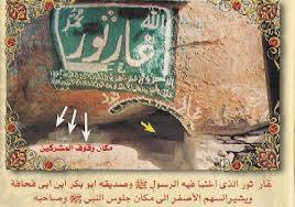 {{ .إِلاَّ تَنصُرُوهُ فَقَدْ نَصَرَهُ اللَّهُ إِذْ أَخْرَجَهُ الَّذِينَ كَفَرُواْ ثَانِيَ اثْنَيْنِ إِذْ هُمَا فِي الْغَارِ إِذْ يَقُولُ لِصَاحِبِهِ لاَ تَحْزَنْ إِنَّ اللَّهَ مَعَنَا فَأَنزَلَ اللَّهُ سَكِينَتَهُ عَلَيْهِ وَأَيَّدَهُ بِجُنُودٍ لَّمْ تَرَوْهَا وَجَعَلَ كَلِمَةَ الَّذِينَ كَفَرُواْ السُّفْلَى وَكَلِمَةُ اللَّهِ هِيَ الْعُلْيَا وَاللَّهُ عَزِيزٌ حَكِيمٌ }} سورة التوبة الآية ( 40 ) .